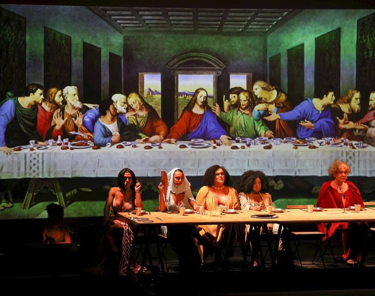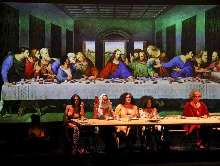 Um grupo de pessoas se reúne ao redor de uma mesa para uma última ceia, em referência à passagem bíblica em que Jesus compartilha sua última refeição com os apóstolos. Em cena, um…