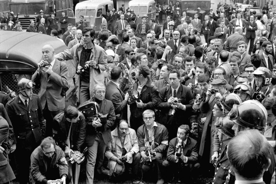 Henri Cartier-Bresson (à esquerda) entre outros fotógrafos durante repressão da polícia aos estudantes que ocupavam…