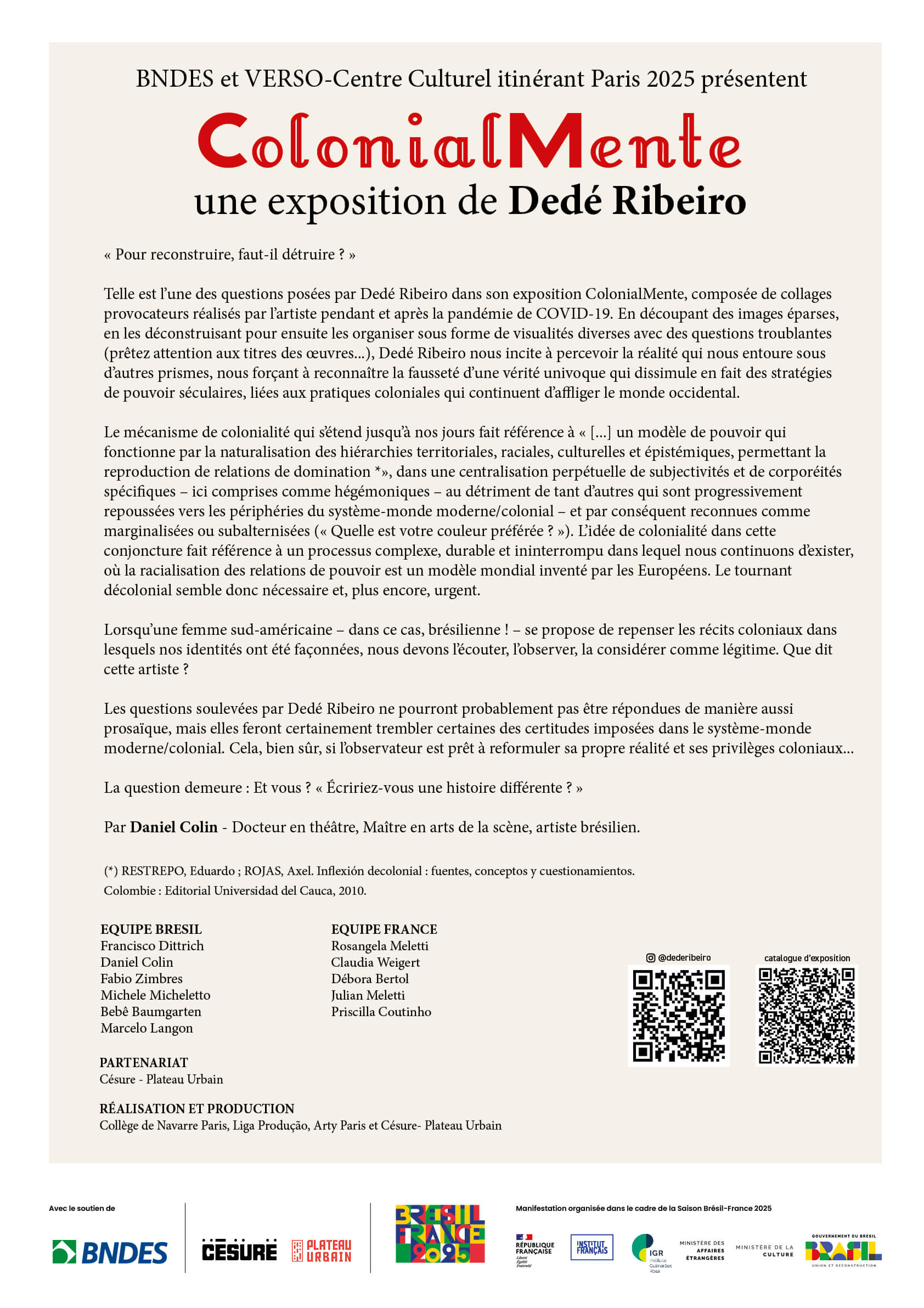 VERSO est un centre culturel itinérant qui va accueilir des expositions, proposera des événements artistiques, festifs et gastronomiques, organisera des conférences, des débats d’idées, des rencontres professionnelles et circulera dans des espaces culturels parisiens pertinents durant la Saison du Brésil en France d’avril à septembre 2025.