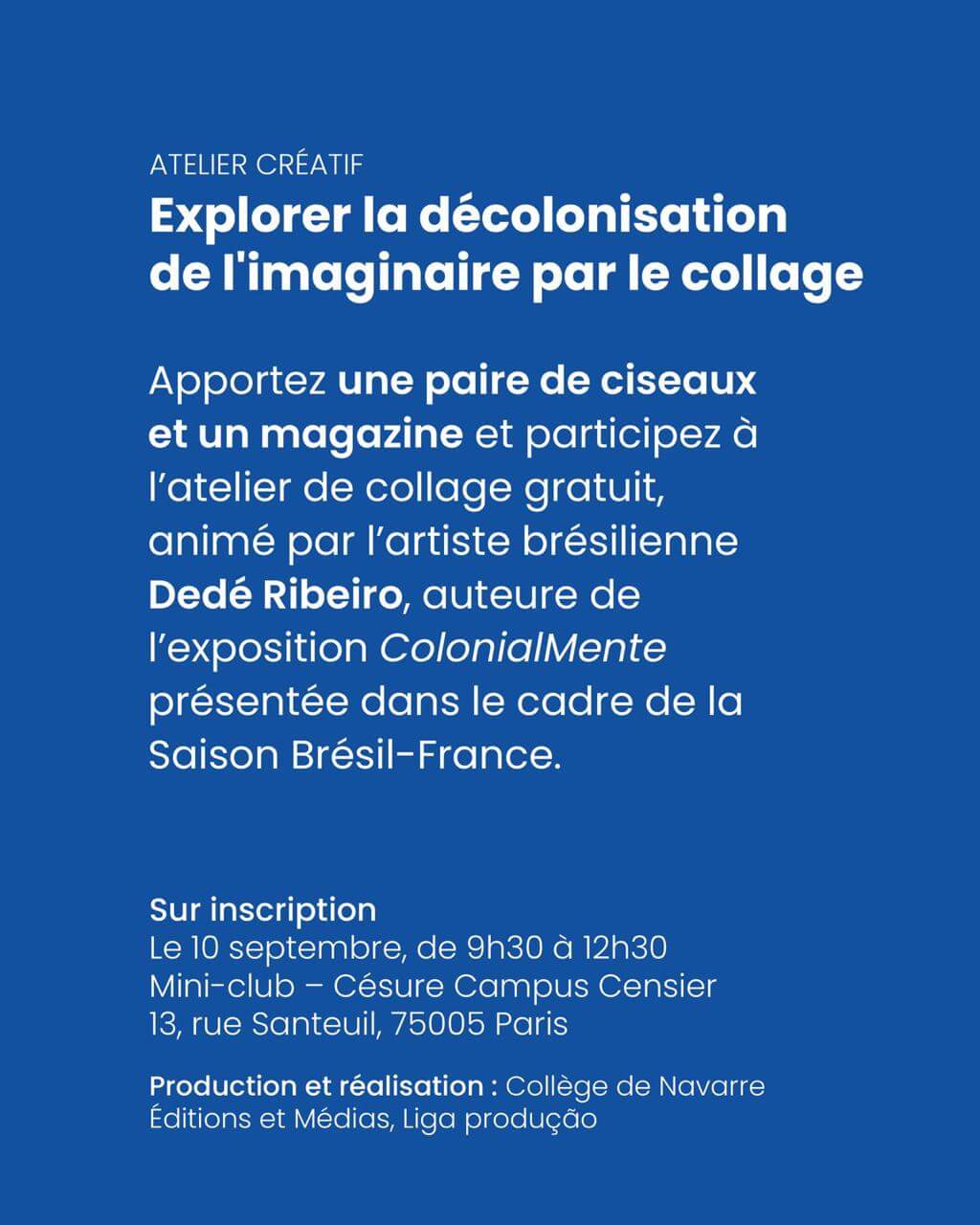 MASTERCLASS – Décolonialisme et art. Comment le décolonialisme influence-t-il les expressions artistiques ? Cette rencontre réunira diuérents experts qui apporteront leur éclairage sur la complexité de ces questions. Avec Dedé Ribeiro, Izabella Borges et Débora Bertol.