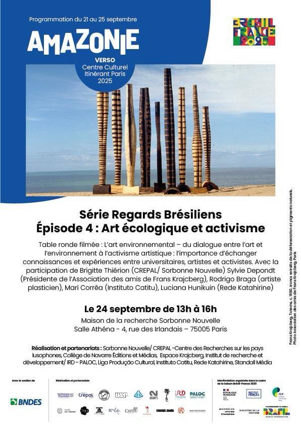Avec la participation de Brigitte Thiérion (CREPAL/ Sorbonne Nouvelle), Sylvie Depondt (présidente de l’Association des amis de Frans Krajcberg), Rodrigo Braga (artiste plasticien), Mari Corrêa (Instituto Catitu), Luciana Hunikuin (Rede Katahirine)