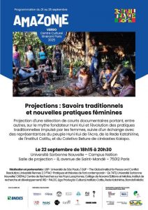 Projection d’une sélection de courts documentaires portant, entre autres, sur le mythe fondateur Huni Khui et l’évolution des pratiques traditionnelles impulsé par les femmes, suivie d’un échange avec des représentant.es du peuple Huni Khui de l’Acre, de la Rede